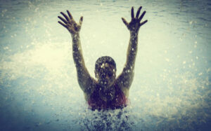 Woman swimming in spa pool, summer vacation